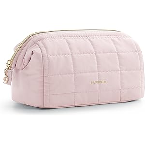 BAGSMART Makeup Bag Travel Toiletry Bag, Puffy Padded Make Up Bags for Women Makeup Organizer Case, Wide-open Pouch Purse Travel Essentials Toiletries Accessories Brushes, Pink